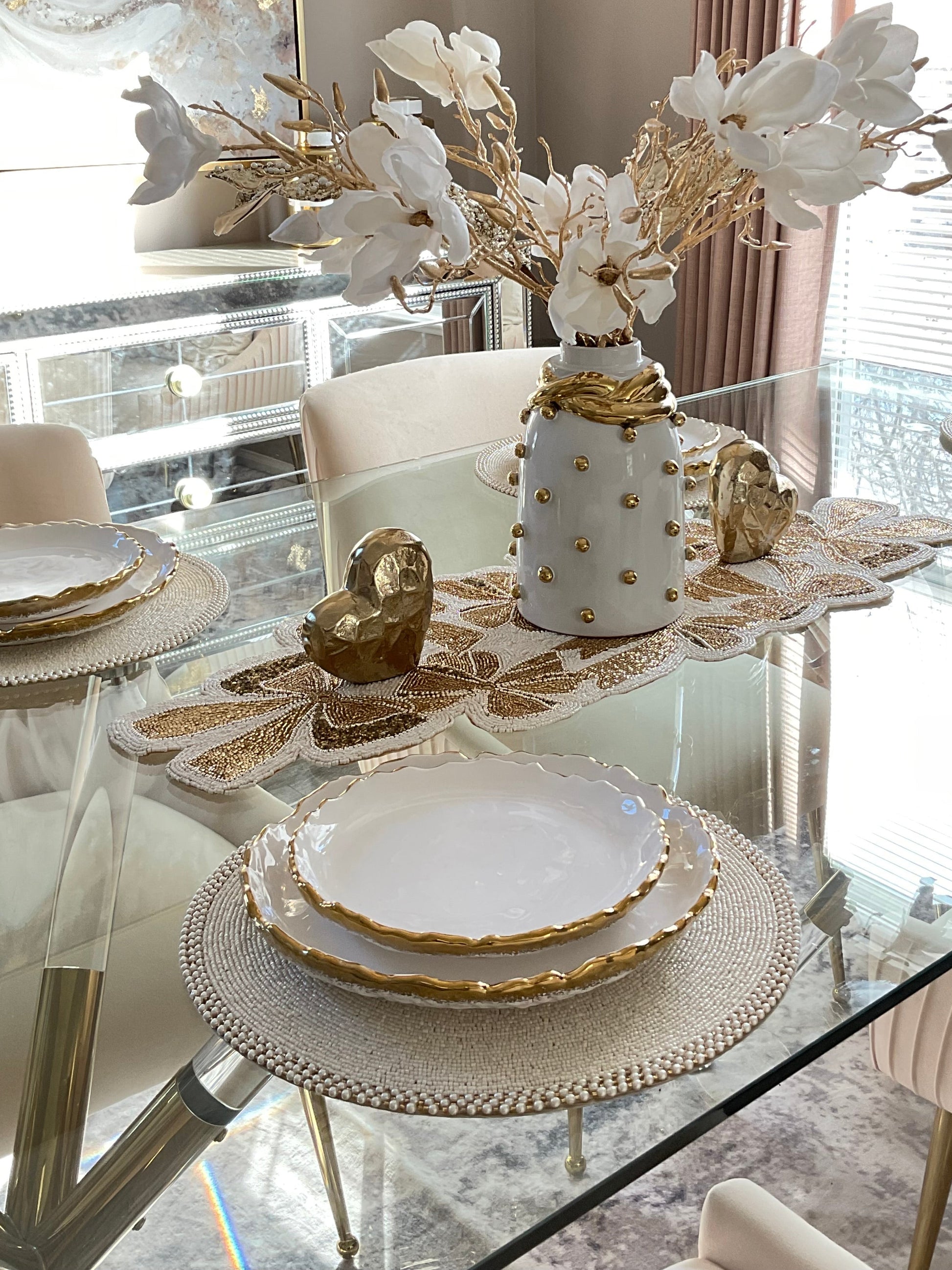 White Beaded Placemat Set Of 6